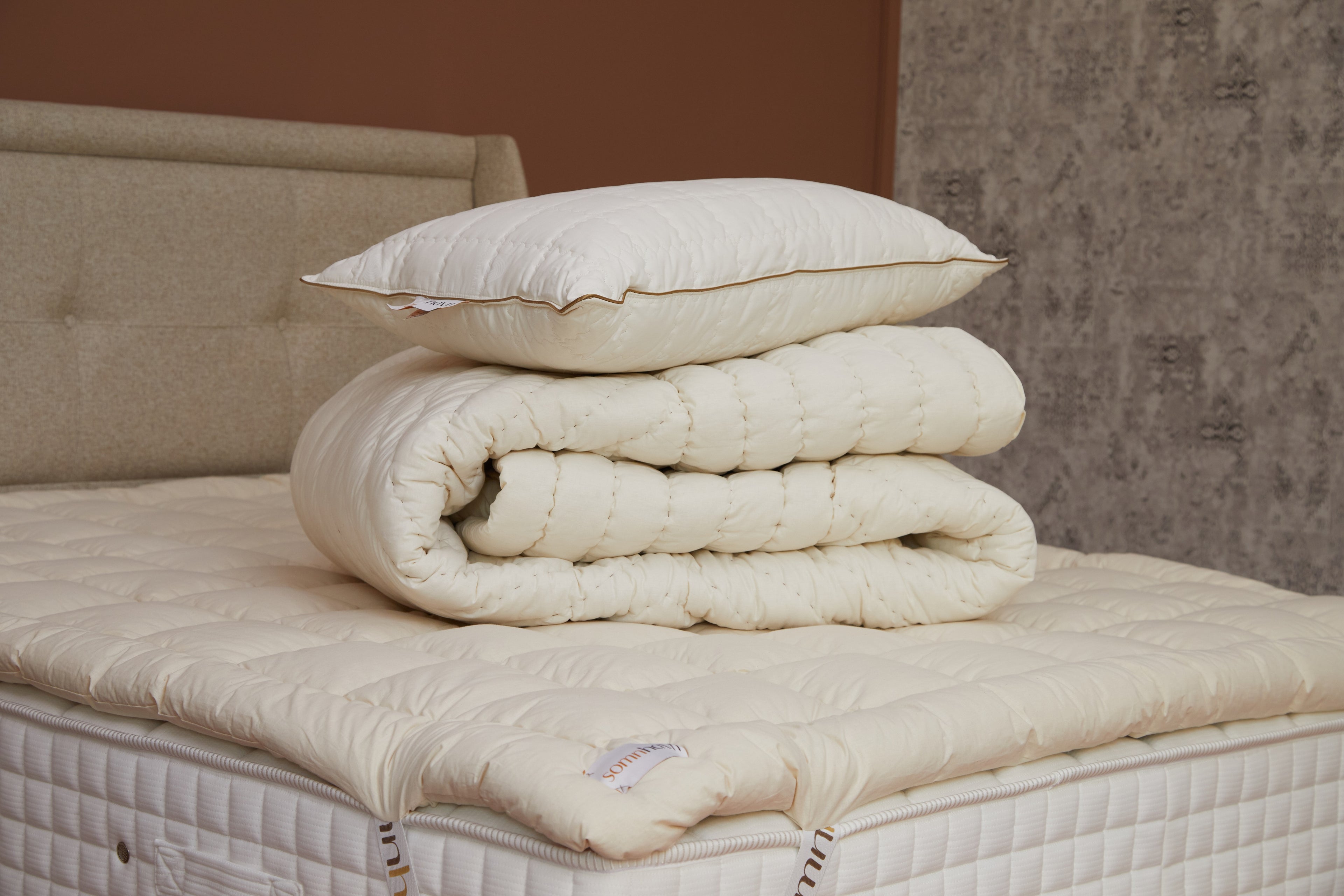 Organic wool is a natural, sustainable material known for its temperature regulation, moisture-wicking, and hypoallergenic properties. It provides a healthier sleep environment by resisting dust mites, mold, and bacteria, without the use of synthetic chemicals.